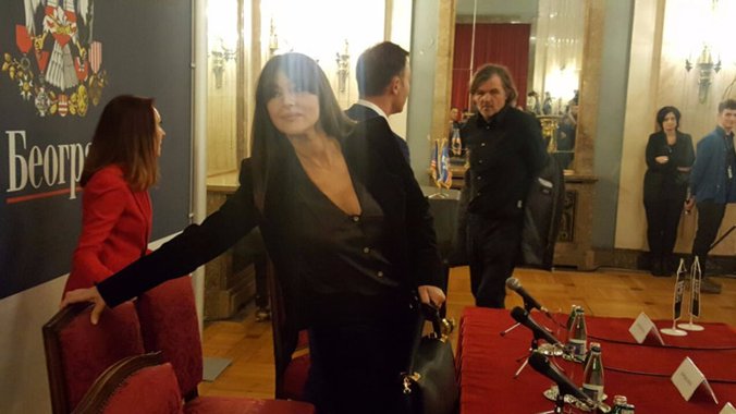 Monika je stigla u srpsku prestonicu, pa je sa Emirom Kusturicom prvo otišla u Skupštinu grada Beograda.