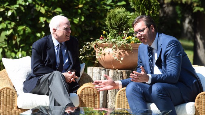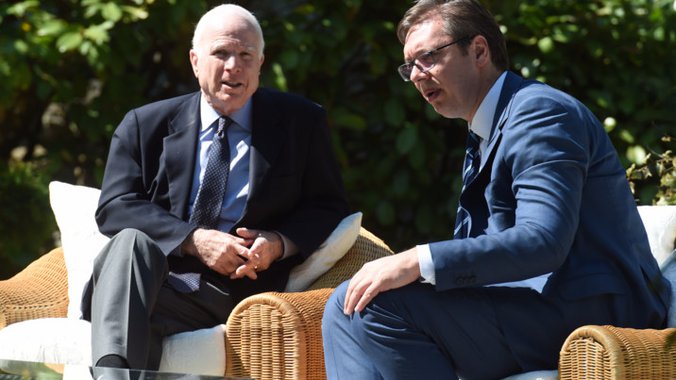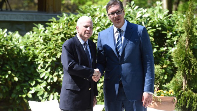 Vučić je Mekejnu zahvalio premijeru što je, kako je rekao, najčešće prisutan američki senator u ovom regionu, i što mu nije teško da čuje i stvari koje možda ne želi. Mekejn je premijeru čestitao na pobedi na predsedničkim izborima, i obećao svu moguću podršku Srbviji na njenom evropskom putu.