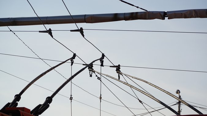 Na Plavom mostu u pravcu ka naselju Medaković, vozač trolejbusa je izašao iz vozila kako bi namestio motke koje su pale sa mreže.