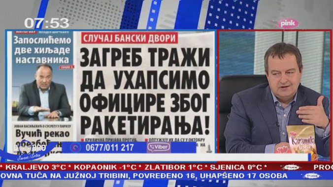 Govoreći o zahtevu Zagreba za hapšenjem petorice oficira JNA, od kojih su četvorica srpski, a jedan je hrvatski državljanin, a koji se optužuju da su u oktobru 1991. hteli da ubiju Tuđmana, Dačić kaže da je Hrvatska “ušla u kolo i teško joj je da izađe, odnosno u državi postoji antisrpski aksiom”.