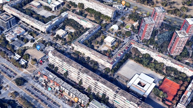 Zanimljivo je da zgrada godinama unazad funkcioniše kao grad u malom i ispresecana je parkovima, školama, vrtićima, lokalima, igralištima.