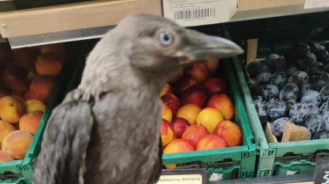 Kako se na fotografiji vidi, ptica se izgleda toliko odomaćila i vezala za svog vlasnika da ga čak prati i u supermarketu.