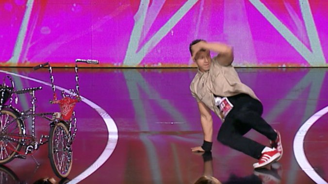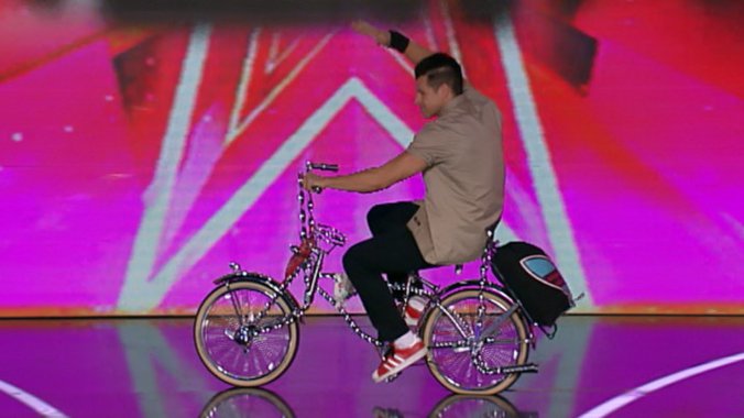 On je neobičnim biciklom ušao u studio i odmah zainteresovao one koji su tu da odluče o njegovoj daljoj sudbini u šouu.