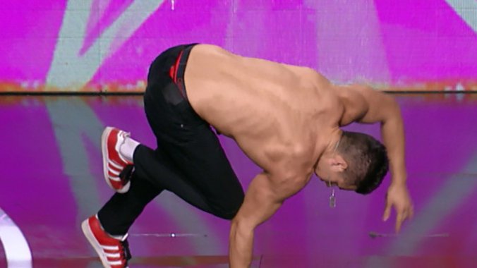 Posle toga takmičar je ispričao da želi da završi u Ginisovoj knjizi rekorda, jer može da uradi 96 sklekova sa nogama na ramenima u roku od jednog minuta.
