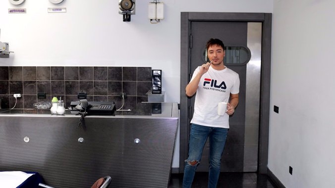 Milan je poznat kao neko ko nije ranoranilac, te mu je ustajanje u cik zore teško palo, pa mu je kafa bila i više nego potrebna. Kako nije mogao da sačeka da mu neko spremi omiljeni crni napitak on je stvar uzeo u svoje ruke i našao se u ulozi šankera. Milan se tako našao s druge strane šanka i pripremio sebi kafu kako bi se što pre razbudio, što je zabeležio i naš paparaco.