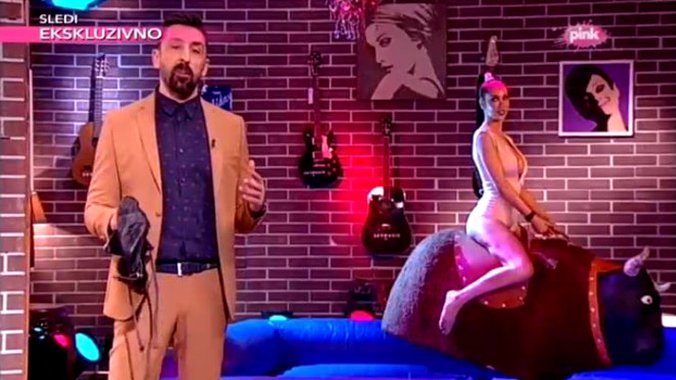 Tako je bilo i u poslednjoj emisiji, za koju je iznajmio električnog bika kog obično viđamo u luna-parkovima i na filmovima, a na kojem retko ko može da izdrži da ostane duže od dva minuta.