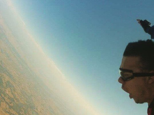 Naime, Ognjen je objavio fotografiju koja je nastala 2015. godine prilikom njegovog prvog skoka padobranom, sa neverovatne visine, od oko 3.000 metara.