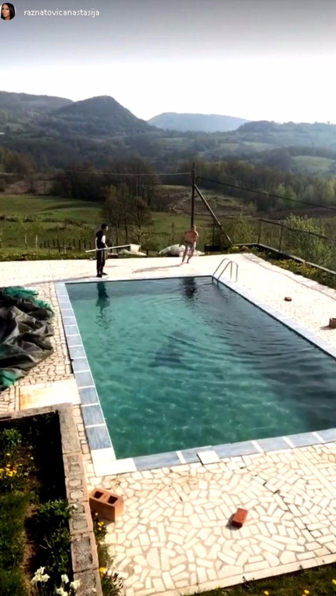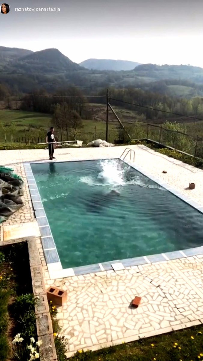 Sudeći po tome da su u planini i da je trenutno 1. maj, temperatura u bazenu sigurno nije prijatna, ali čini se da to Ražnatovića nije ni malo brinulo.