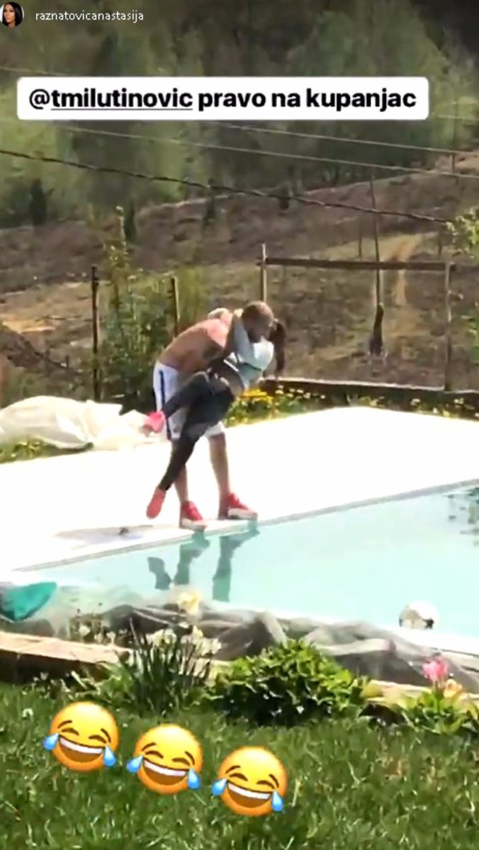 Naime, Veljko je prvo išao oko punog bazena koji se nalazi u dvorištu vikendice, a potom uskočio u njega. Anastasija je sve to snimili svojim telefonom i bila je u šoku.