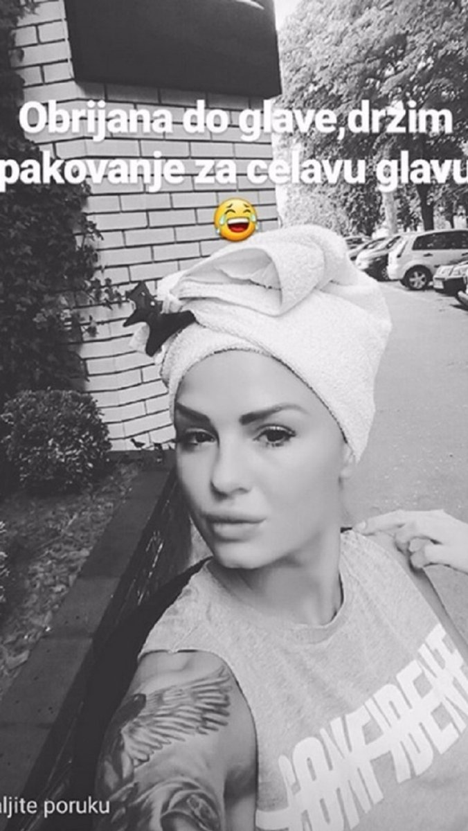 Obrijana do glave, držim pakovanje za obrijanu glavu - napisala je bivša farmerka na društvenoj mreži.