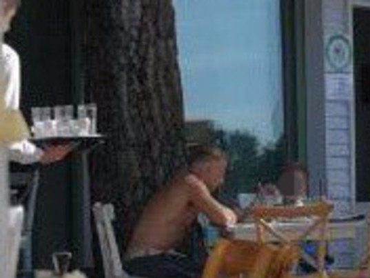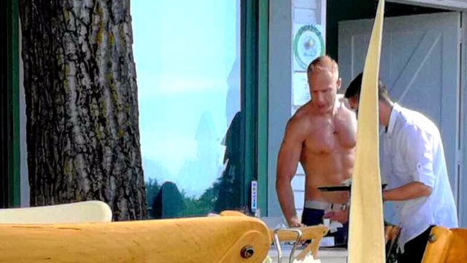 Milan je u jedna kafić na beogradskom moru poveo i svog sina Vuka, koji se rashlađivao uz sladoled, dok se zgodni tata dičio rezultatima napornih meseci u teretani.