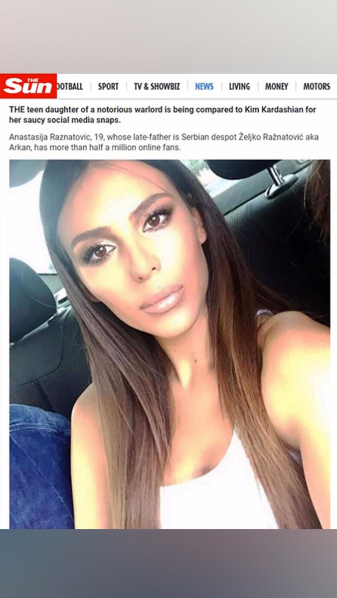 Poznati britanski tabloid "The Sun" piše o ćerki najveće balkanske zvezde Svetlane Cece Ražnatović, Anastasiji. Naime, Britanci su objavili članak o Anastasiji a porede je, ni manje ni više, nego sa rijaliti zvezdom i najpopularnijom starletom na planeti Kim Kardašijan.