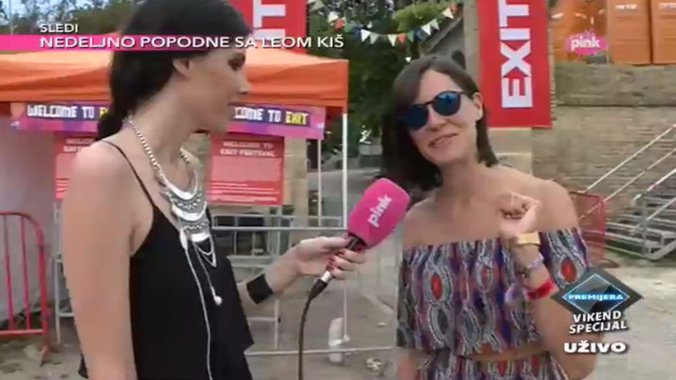 Marina Maksimović, reporterka emisije "Premijera - Vikend specijal" uključila se u današnje izdanje emisije Tijane Price i Ognjena Nestorovića sa Petrovaradinske tvrđave, gde se već uveliko traje "Egzit" festival koji nije želela da propusti ni jedna poznata pevačica.