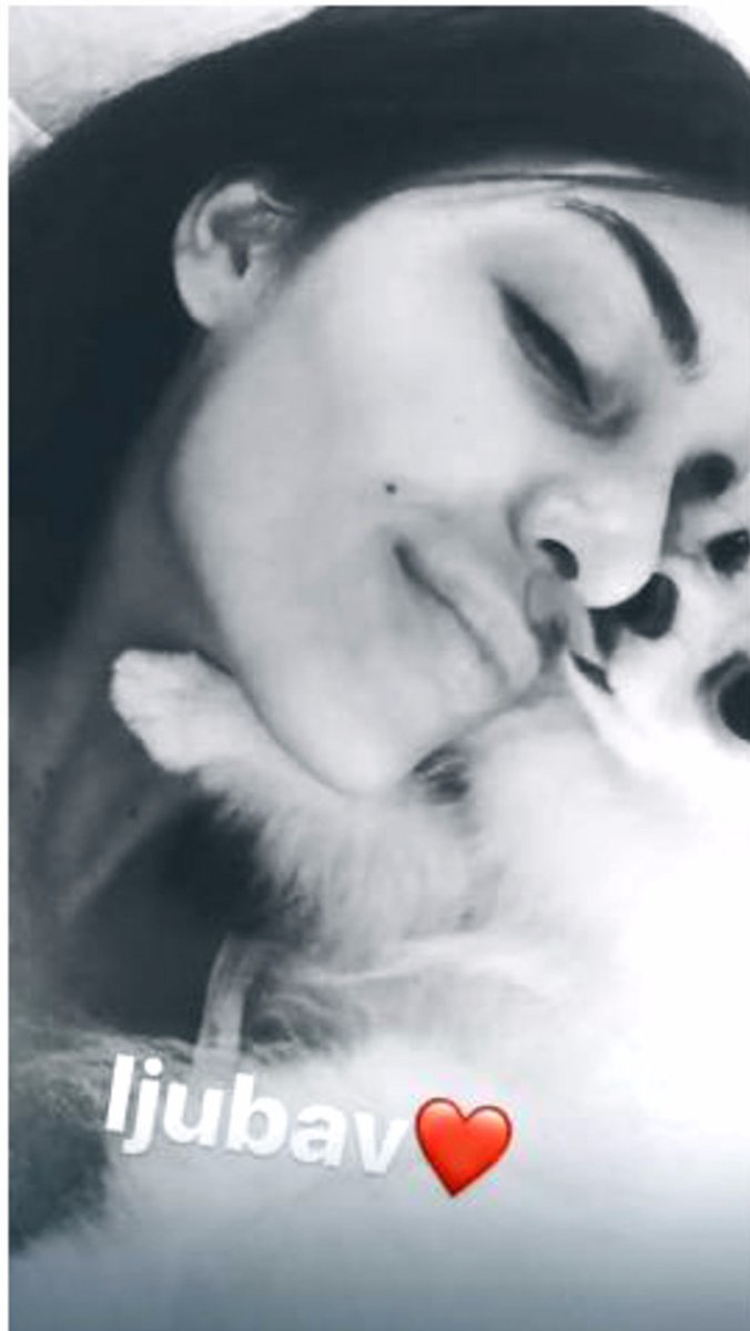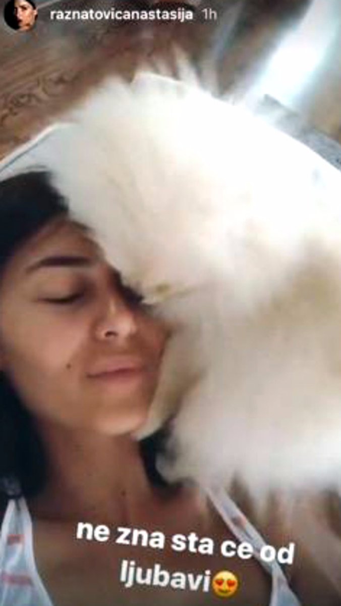 Na snimcima se vidi kako se Anastasija mazi sa psom, koji joj je veoma drag, pa mu dozvoljava čak i da skače po njenoj glavi i radi šta mu se prohte.