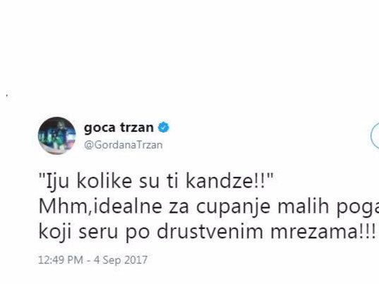 Ona se već duže vreme bori sa" hejterima" koji joj zameraju mnoge stvari, ali za razliku od svojih koleginica i kolega, ona ne želi nikome da prećuti. Tako je bilo i danas, kada su je napali zbog dužine njenih noktiju. Naime, očigledno je nekome zasmetalo što Goca voli da ima duge nokte, pa je prozvao zbog toga, a ona je žustro odgovorila.