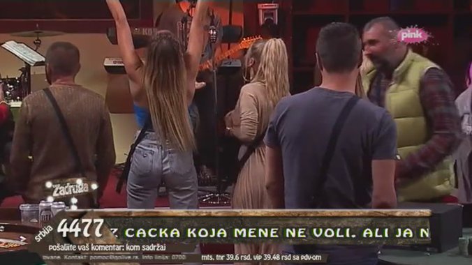 Igra sa pevačem, dopala se Jeleni Golubović, ali baš i ne Luni Đogani, koja je sve ovo gledala sa strane, nekoliko metara od njih, dok je igrala sa Milanom Miloševićem. Da scena bude još zanimljivija, Jelena Golubović ispod majice nije imala ništa, što je Lunu još više iznerviralo.