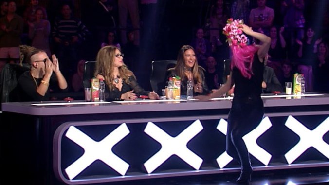 I ne samo to - u toku njegovog nastupa, Ana Mihajlovski je sa pink perikom i cvećem u kosi ušla na scenu, prišla žiriju i pritisnula zlatni taster!