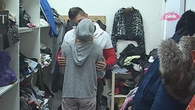 Nakon nekoliko razmenjenih rečenica njih dvoje su se zagrlili i počeli strasno da se ljube, kako bi pokazali jedno drugome da njihova veza nije u krizi, bez obzira što se tu nalazi njegova supruga, a onda su nastavili sa emotivnim izlivima.