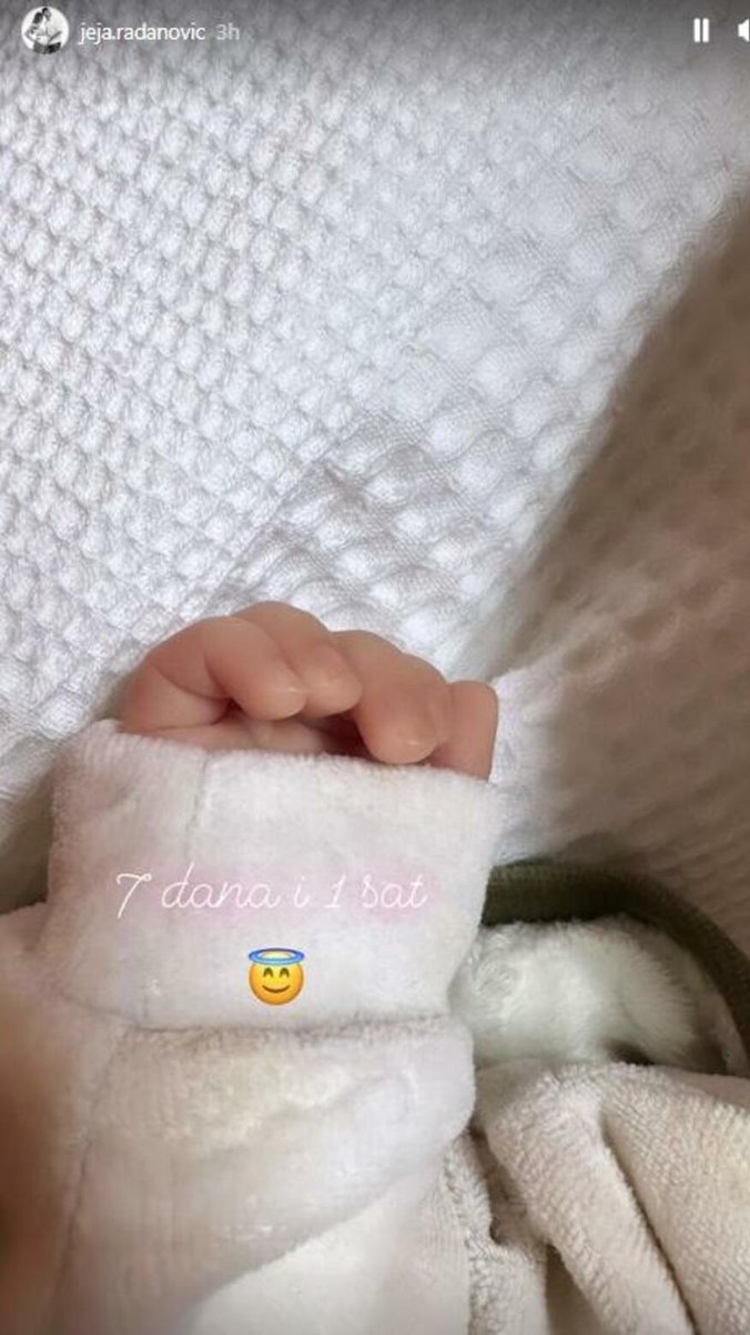 Ona je objavila fotografiju sina, tačnije samo njegovu ručicu, na kojoj je naznačila da se porodila pre tačno sedam dana.