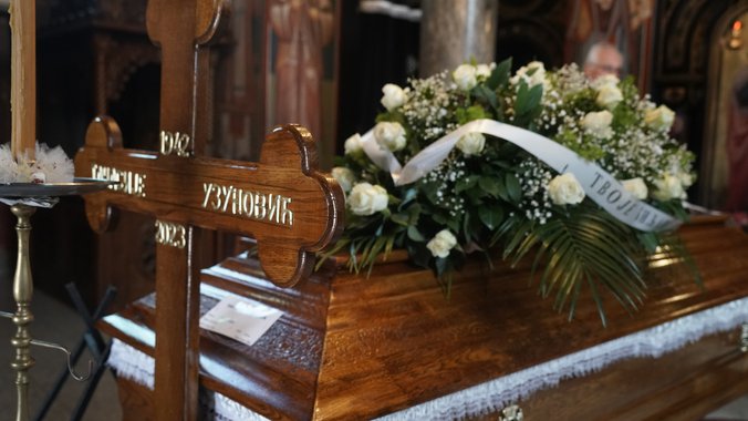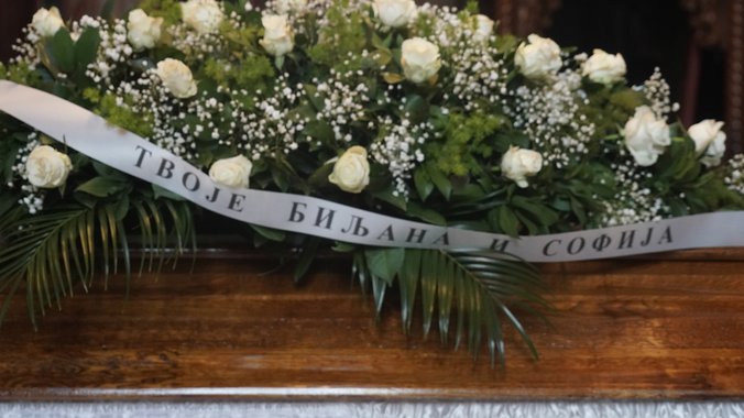 Preko kovčega je stajao venac od belih ruža od ćerke Sofije i njene majke BIljane.
