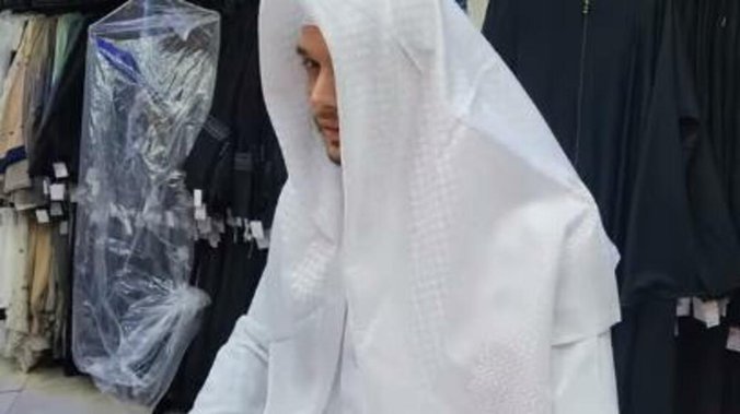 On je snimio kako je obukao gelabiju - belu odeću do poda, koju nose muškarci, koji poštuju islamske običaje.