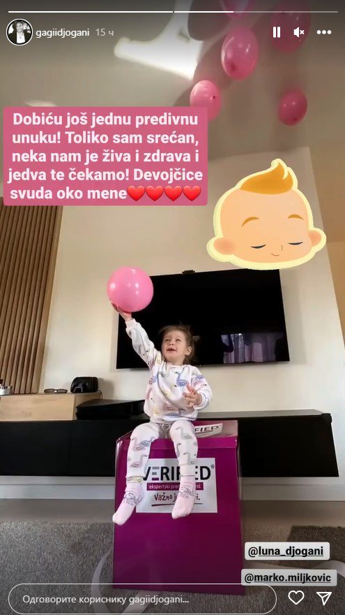 - Dobiću još jednu predivnu unuku! Toliko sam srećan, neka nam je živa i zdrava i jedva te čekamo! Devojčice svuda oko mene - napisao je Gagi ponosno.