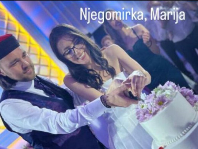 "Njegomirka, Marija", napisala je mladoženjina starija sestra u opisu fotografije na kojoj Marko i njegova izabranica seku prelepu svadbenu tortu.