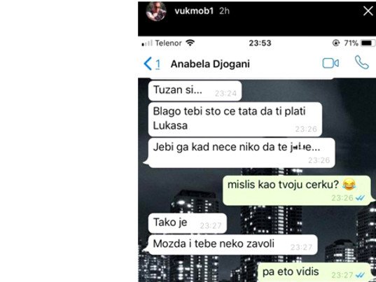Anabela je stala u zaštitu svoje ćerke, kao i svaka majka jer nije želela da trpi uvrede. Rasprava je nastavljena i putem društvenih mreža, a reper je sada objavio prepisku sa Anabelom na svom profilu na Instagramu.