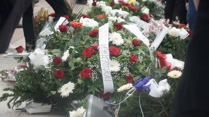 Prijatelji, rodbina, komšije polako pristižu na groblje, a porodica u kapeli prima saučešće. Ispred kapele je muzičar koji lagano svira, te se mogu čuti melodije "Posmrtnog marša", "Tiho noći" i "Ružo Rumena".