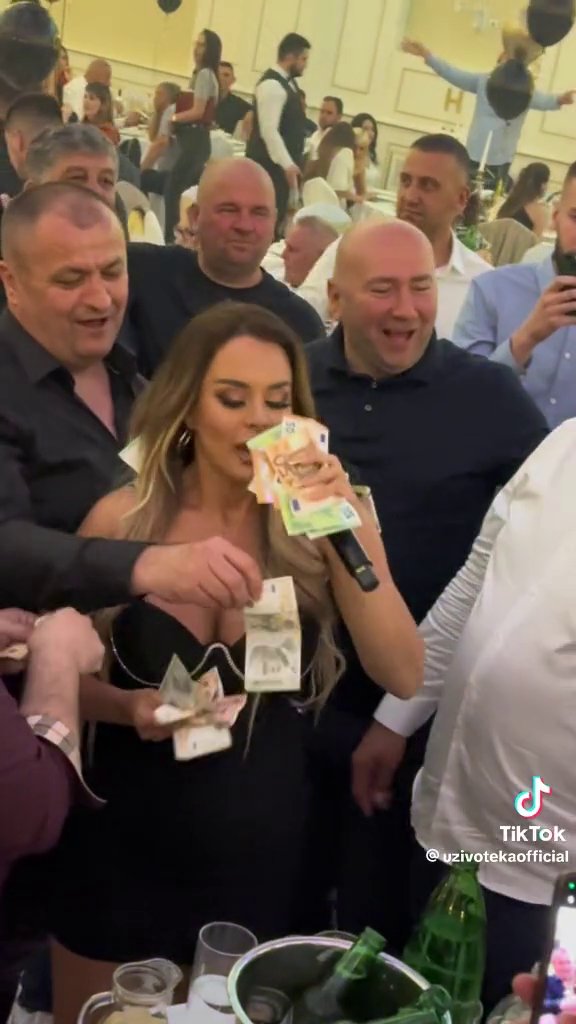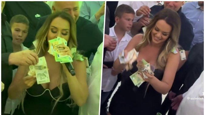 Tijani su ruke bile pune novčanica, a pošto više nije mogla da ih drži u šakama, navalentni gosti slavlja gurali su joj pare za vrat i oko bretela, a snimak sa slavlja izazvao je lavinu komentara na mrežama.