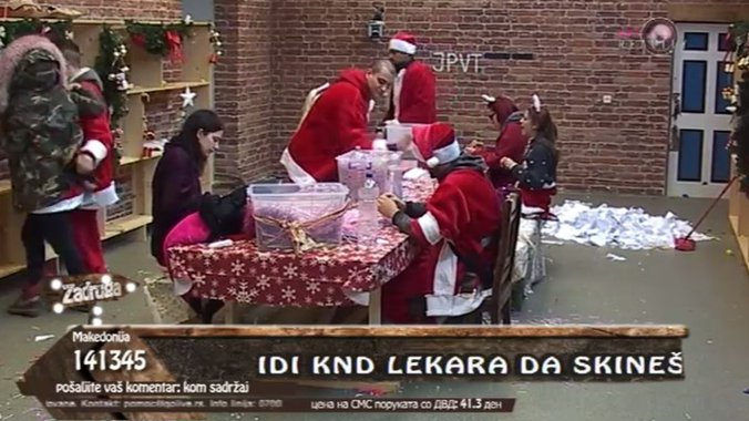 Dragi zadrugari, vreme je za još jednu prazničnu igricu. Danas ćete vežbati veštinu uvijanja poklona, ali tako što ćete vi biti poklon, odnosno uvijaćete jedni druge u ukrasni papir. Neka svako pronađe svog para. Na znak muzike u isto vreme će se takmičiti dva para u brzini uvijanja papira - pisalo je između ostalog u pismu.