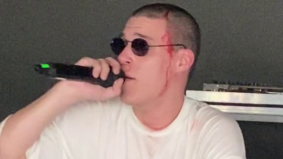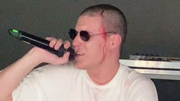 Uprkos vidljivim povredama i krvarenju, popualrni izvođač rep muzike se vratio na scenu, te je nastavio sa svojim nastupom.