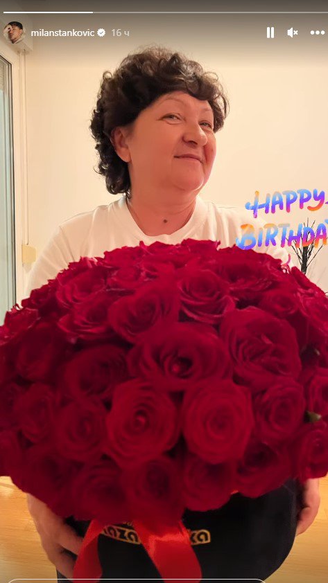 I Milan je majci čestitao rođendan na instastoriju, kada je podelio njenu fotografiju na kojoj drži veliki buket crvenih ruža.