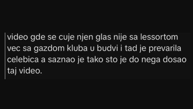 Video gde se čuje njen glas nije sa Lesorom, već sa gazdom kluba u Budvi i tad je prevarila Čelebića, a saznao je tako što je do njega došao taj video - glasio je komentar ispod videa na TikToku.