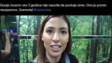 Dunja Jovanić već pet godina nije naučila da poštuje žene. Ovo je prošlo neopaženo. Sramota!, piše u jednom od tvitova.