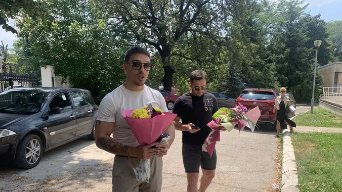 On je u pratnji prijatelja i porodice došao po Taru, koja je vidno umorna i slaba stala pred kamere i kratko rekla kako se oseća.