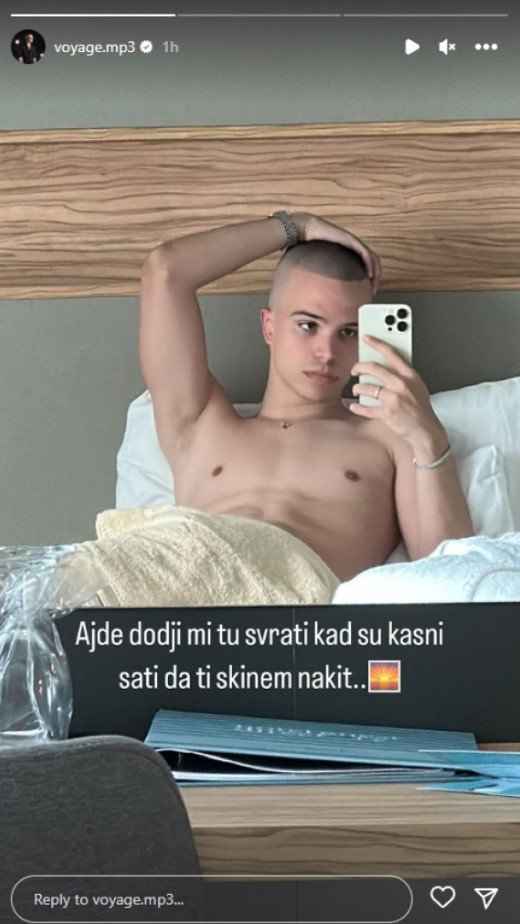 Nakon ove fotografije, Mihajlo je objavio i golišavu fotografiju iz kreveta. On se uslikao bez majice dok je ležao u krevetu, a preko slike je "nalepio" zanimljiv tekst. - Hajde, dođi mi, tu svrati, kad su kasni sati, da ti skinem nakit - napisao je Vojaž.