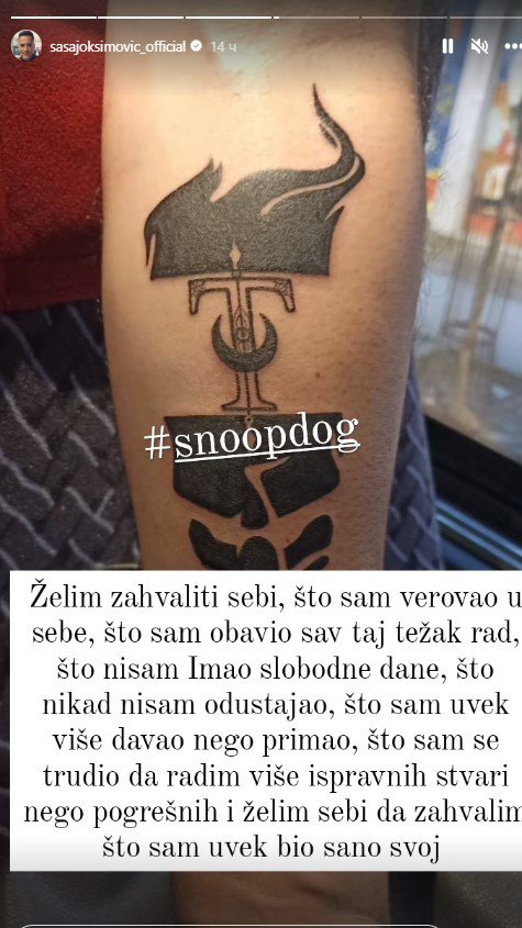 Saša je objavio fotografiju na kojoj se vidi da je istetovirao simbol koji njemu predstavlja veliki značaj, a to je slovo "T" sa simbolom mladog meseca i dosta detalja.