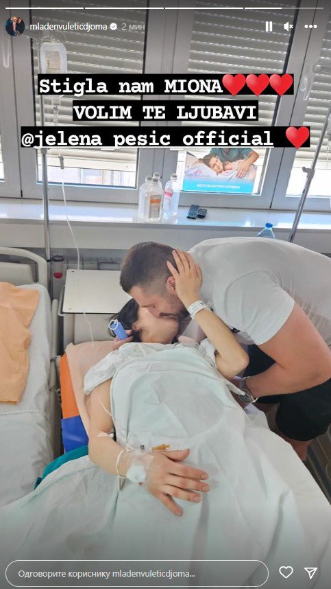 - Stigla nam MIONA, VOLIM TE LJUBAVI - napisao je Mladen na slici koju je objavio na svom Instagram storiju.