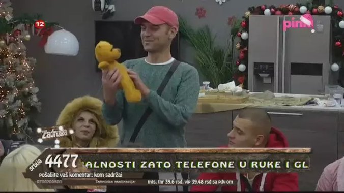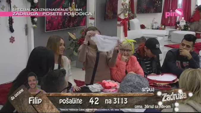 Bane Čolak dobio je pantalone, dok je Miki Đuričić od sestre i drugarice dobio pribor za ličnu higijenu, šolju, ali i novogodišnji džemper za psa Žutu, koja takođe živi sa zadrugarima.