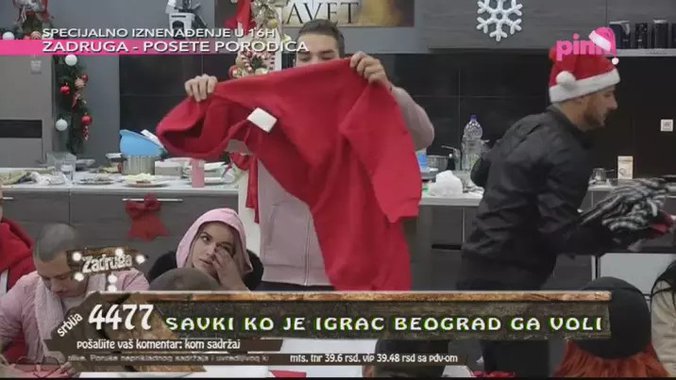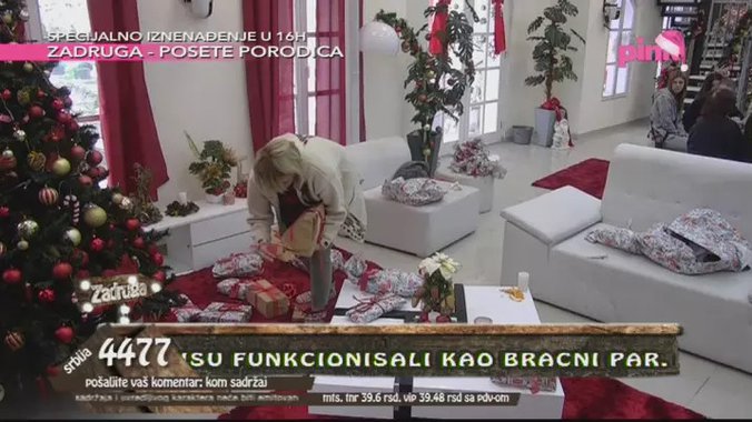Dok su neki ukućani spavali, a drugi bili u frizerskom salonu, zajedno sa voditeljkom Radom Radenović i baka Katom, koja je zadrugarima donela burek, u "Zadrugu" je ušao Deda Mraz koji je stanarima najgledanijeg rijaliti programa na Balkanu ostavio poklone ispod jelke u dnevnoj sobi, koji su im stigli od njihovih porodica.