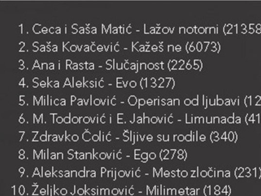 Numera ''Lažov notorni'' odnela je ubedljivu pobedu u žestokoj konkurenciji od 12 najslušanijih pesama u 2017. godini.