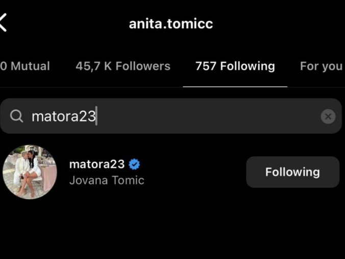 Ono što je svima privuklo pažnju jeste to da je Matora otpratila Anitu, dok Stanojlovićeva svoju partnerku i dalje prati na Instagramu.