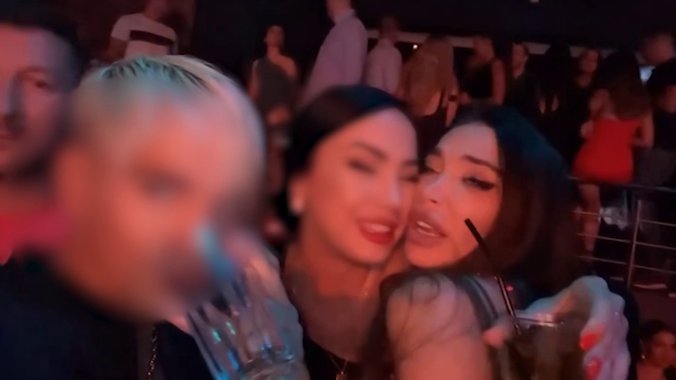 Starleta je sve vreme bila vidno raspoložena, a u jednom trenutku se čak ljubila i sa svojom drugaricom, dok je oko njih bila tona alkohola.