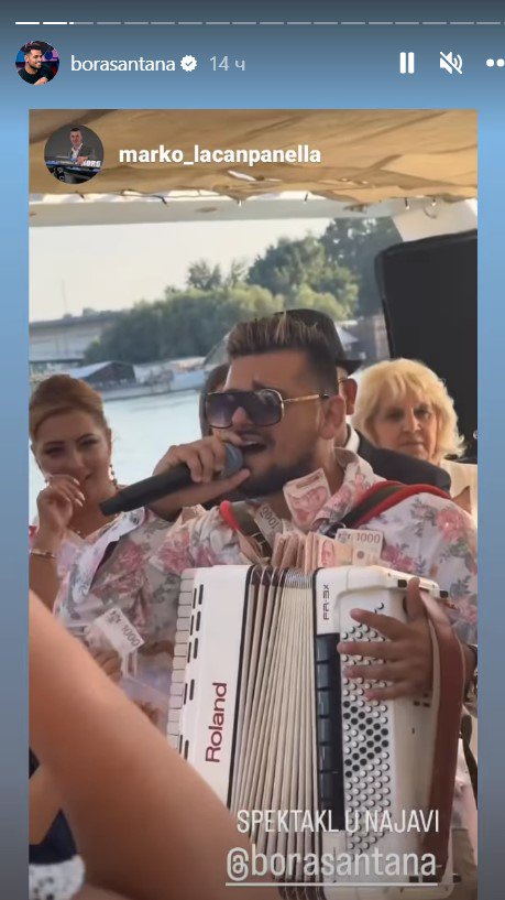 Pored dana su pevali Beki Bekić, kao orkestar Borka Radivojevića. Celi program od ujutro do zore vodio je Bora Santana, koji od završetka rijalitija Zadruga, vodi romske svadbe. I pored svoje "uloge domaćina", Santana je i zapevao i zasvirao pa je, pored svog standardnog honorara, dobro zaradio i uz bakšiš.