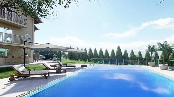 Bazen, palme, uređeno dvorište, prelep pogled.