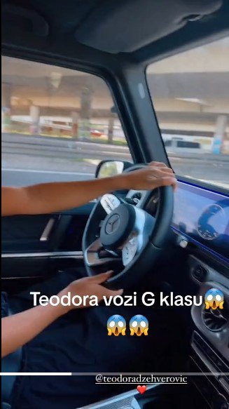 Tačnije, u pitanju je džip marke "mercedes" ili popularna "G klasa" čija cena varira od 100.000 do 250.000 evra.Nasmejana Teodora usnimljena je za volanom ovog besnog četvorotočkaša, ali nije jasno da li je auto njen ili joj je samo ustupljen za vožnju.