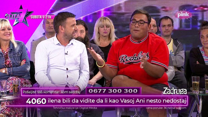 U toku je emisija "Narod pita". Voditelj Darko Tanasijević ugostio je Mikicu Bojanića, Necu Lazića, Bojan Simić ali i najvernije gledaoce Zadruge, Ljiljanu Selimović i pukovnika pilota u penziji, Almira Asanovića.