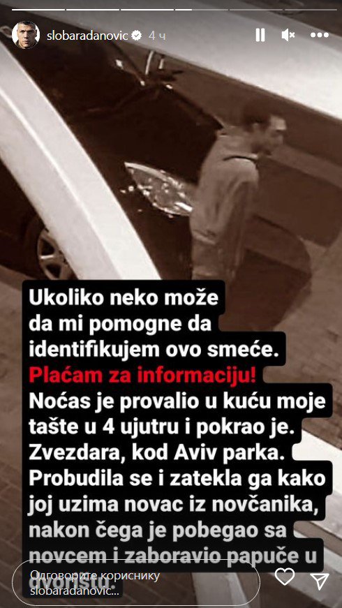 Slobina tašta je opljačkana, a pevač je čak objavio i sliku lopova na Instagramu.