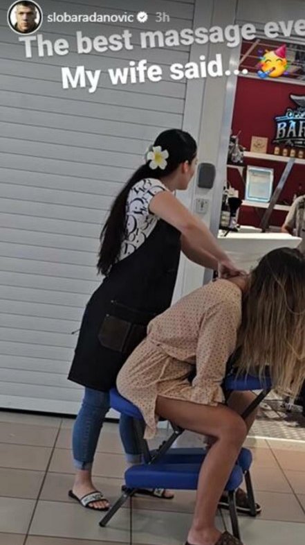 Ona je sela u masersku stolicu i prepustila se čarima masaže, koja je popularna kako na ovakvim mestima, tako i po tržnim centrima u svetu.Slobi je ovo bilo simpatično pa je snimao Jelenu, a kada ju je pozvao, ona nije reagovala, već mu je samo mahnula.